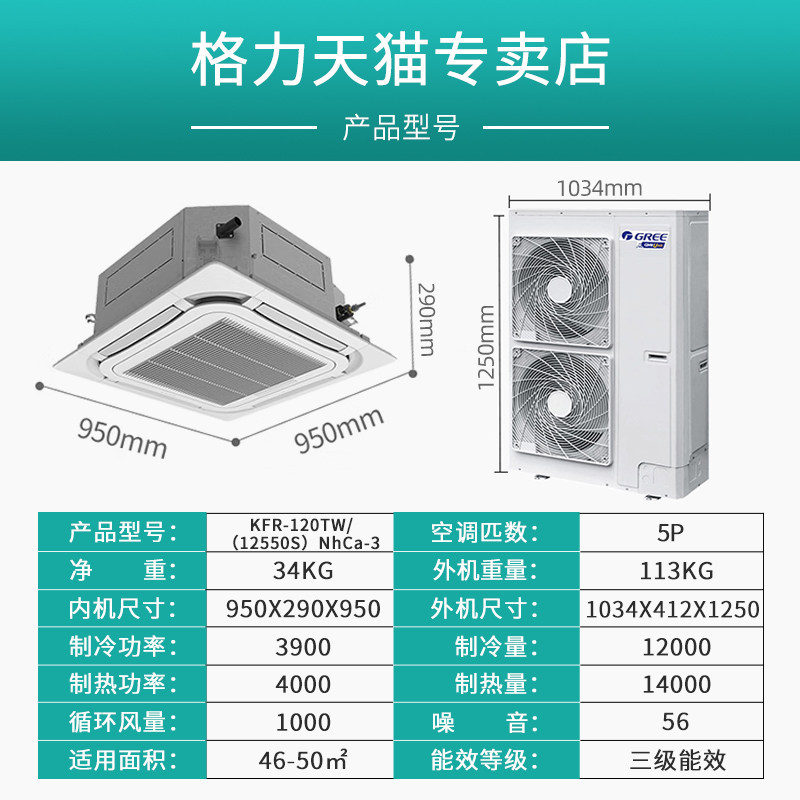 GREE/格力商用3匹p吸顶机5匹p吸顶机天花机 四面出风嵌入空调柜机