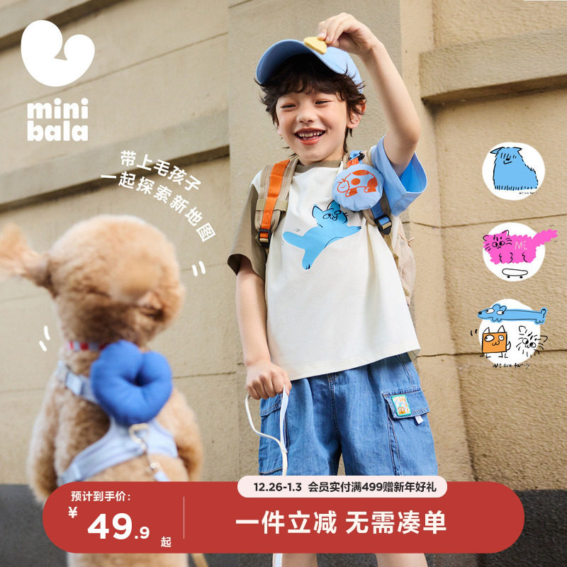 【亲子装】迷你巴拉巴拉男女童短袖t恤夏季速干儿童T恤一家三口