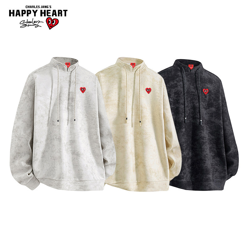 查尔斯桃心 德绒半高领卫衣男生秋冬季扎染帅气运动风保暖打底衫