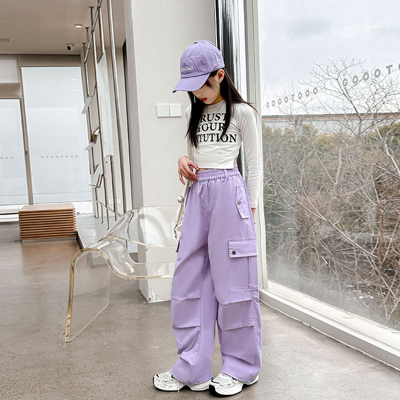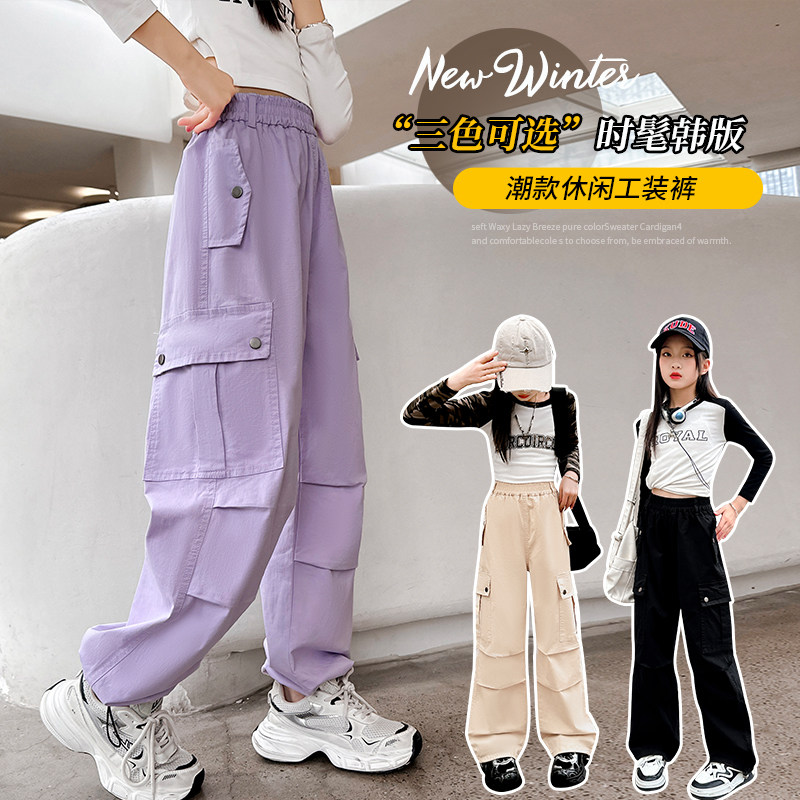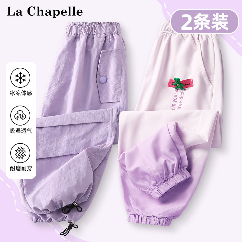 拉夏贝尔女童冰丝防蚊裤夏季儿童宽松休闲裤夏装女孩速干工装裤薄