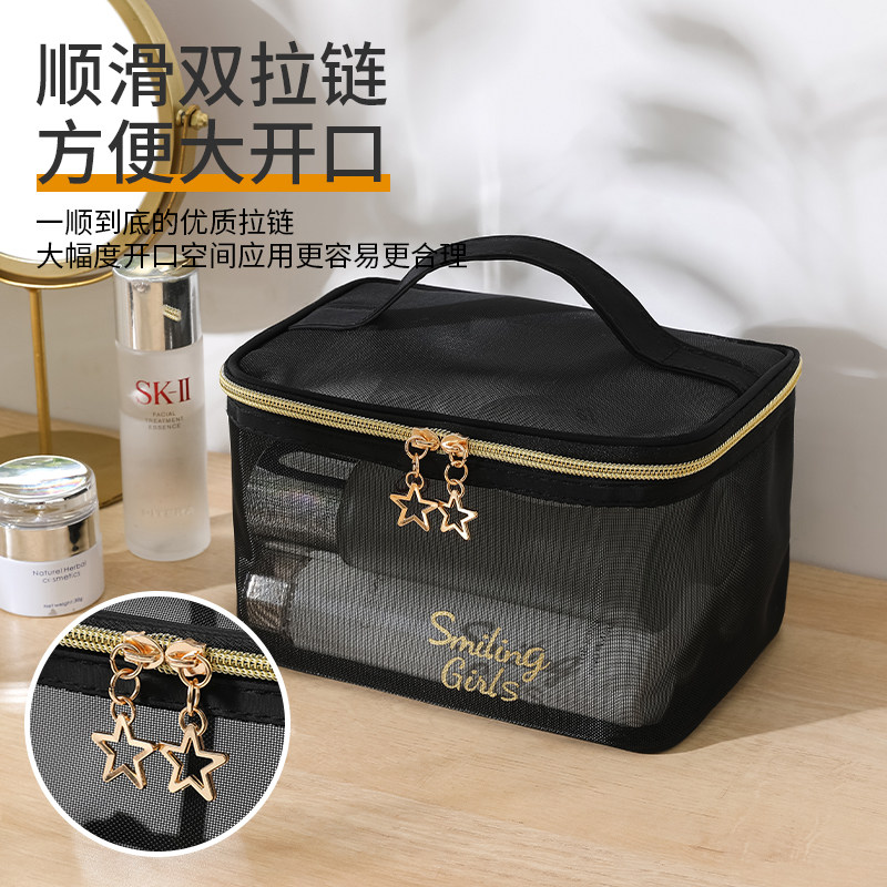 网纱化妆包2024新款收纳袋便携旅行超大容量高级感洗漱包女外出