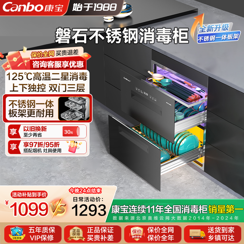 康宝嵌入式二星家用消毒柜磐石不锈钢板架新款厨房碗筷柜烘干一体