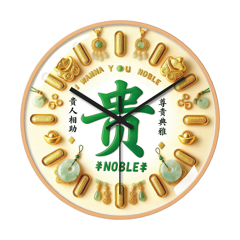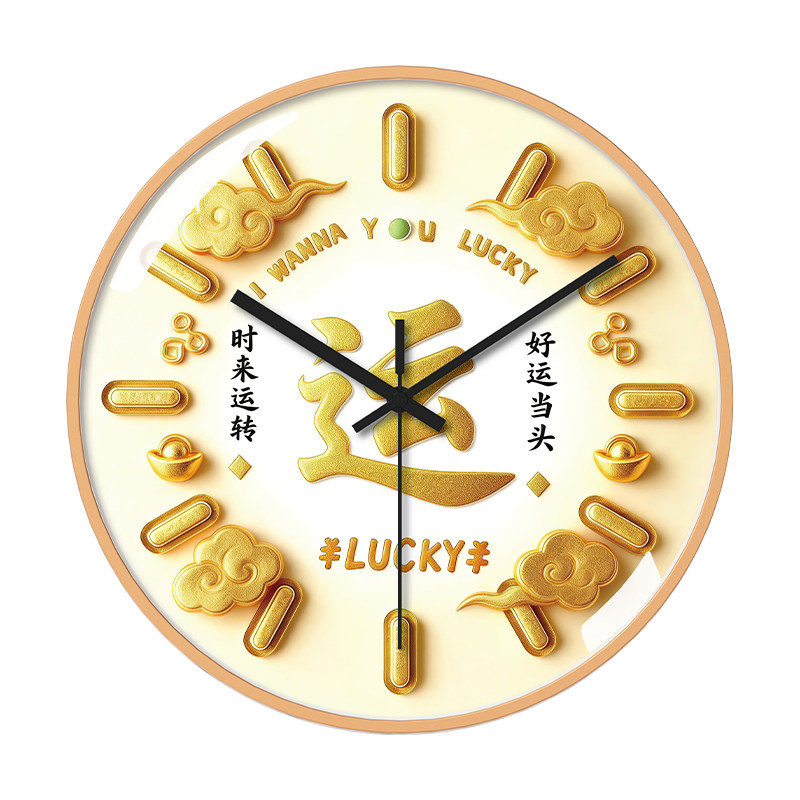 福字挂钟招财进宝金色时钟家用客厅装饰钟表幸运吉祥挂墙钟石英钟