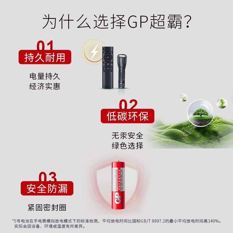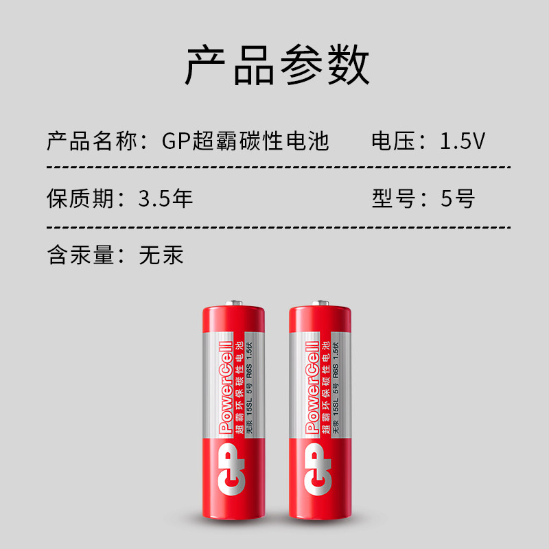 GP超霸5号7号红超碳性电池1.5V无汞环保五号七号干电池大全空调电视遥控器鼠标键盘闹钟挂钟耐用