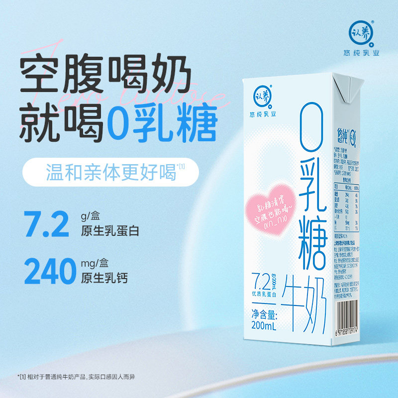 认养0乳糖牛奶200ml*18盒学生儿童奶营养早餐奶高钙型无乳糖牛奶