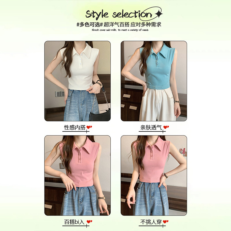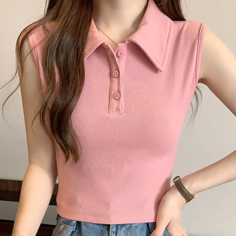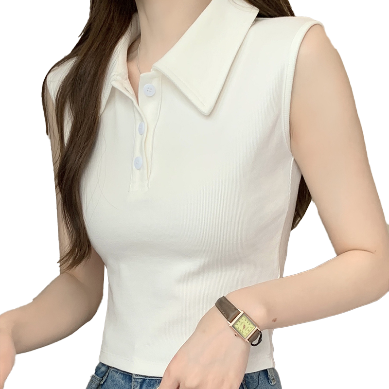 KP真维斯女装秋季POLO领文胸一体吊带背心女白色无袖坎肩百搭上衣