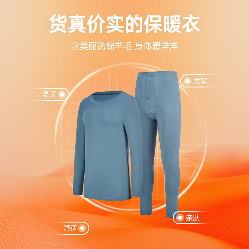 【舒暖】曼妮芬男暖衣裤套装打底秋衣秋裤舒适含羊毛本命年红色