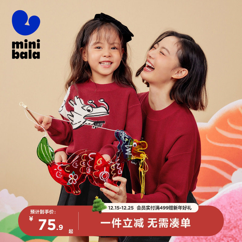 迷你巴拉巴拉男女童毛衣冬宝宝生肖国风亲子装母女装新年儿童上衣