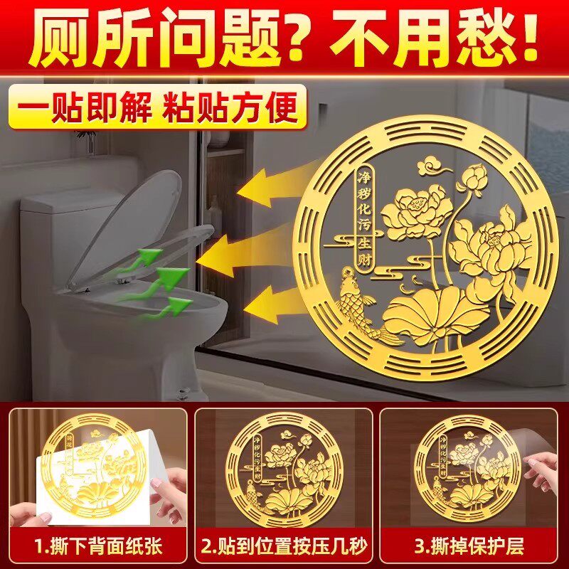 荷花鲤鱼净秽图卫生间莲花贴好运连连厕所鞋柜荷花锦鲤生财金属贴