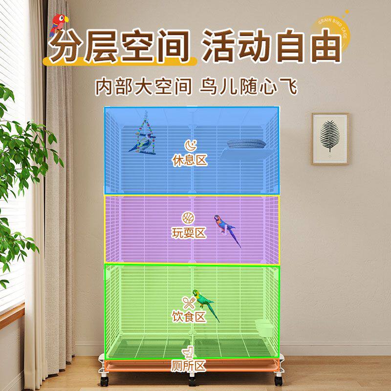 鸟笼加粗加密透明家用大号鹦鹉虎皮玄凤珍珠八哥生态横丝豪华别墅