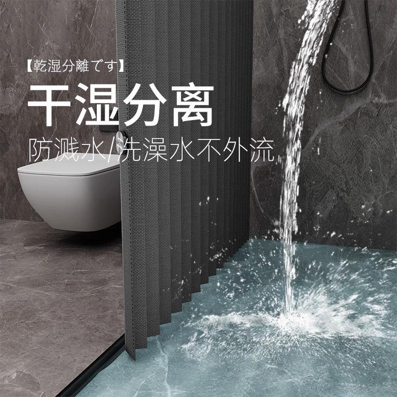 折叠浴帘浴室高档防水布卫生间淋浴干湿分离隔断帘防霉挡水磁吸