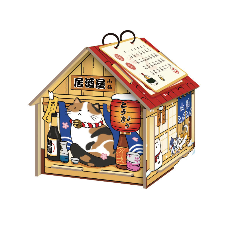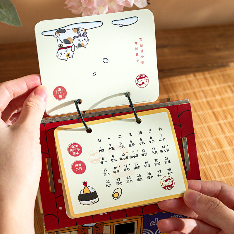 2026年新款猫咪料理屋日月台历可拆卸收纳高颜值桌面装饰家居摆件