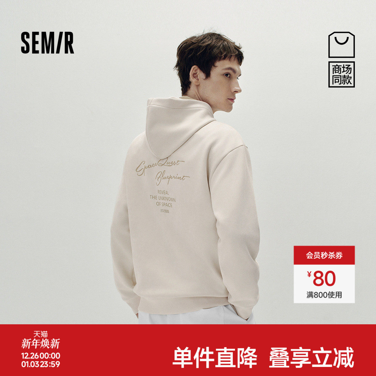 [商场同款]森马连帽卫衣男质感仿麂皮绒2025秋装新款印花绣花上衣