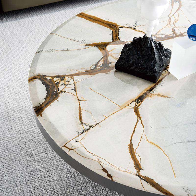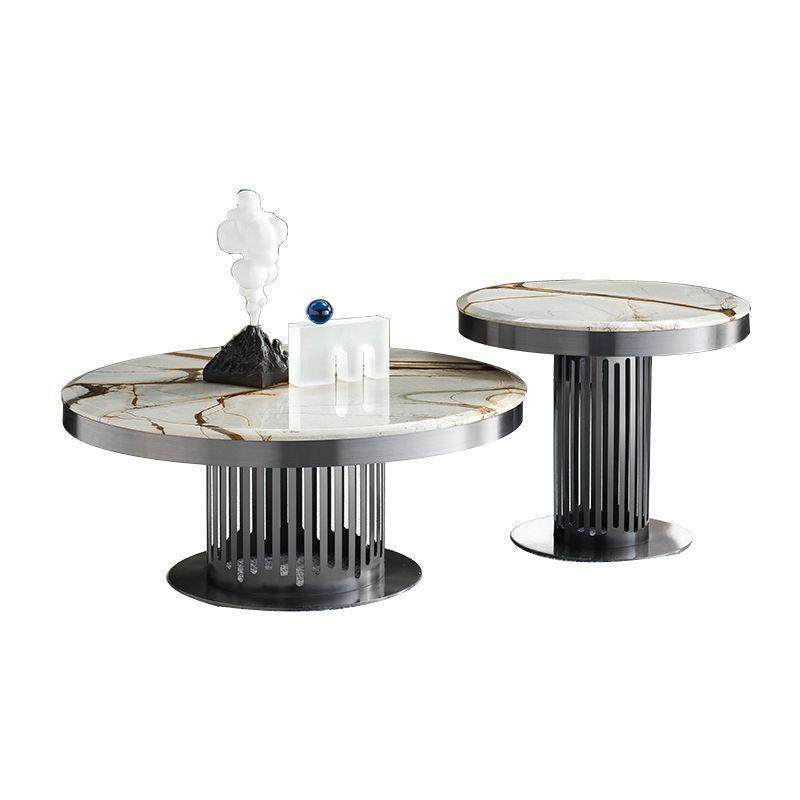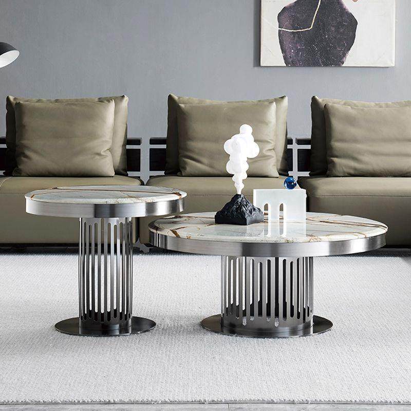 意式轻奢大理石面茶几组合现代极简金属茶几边几小户型客厅家具