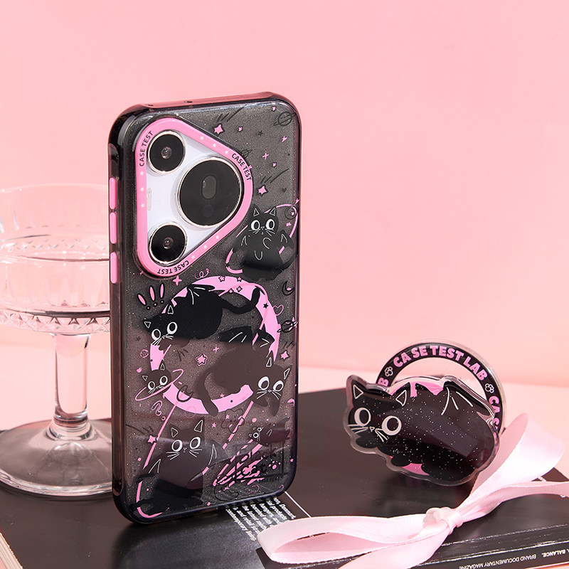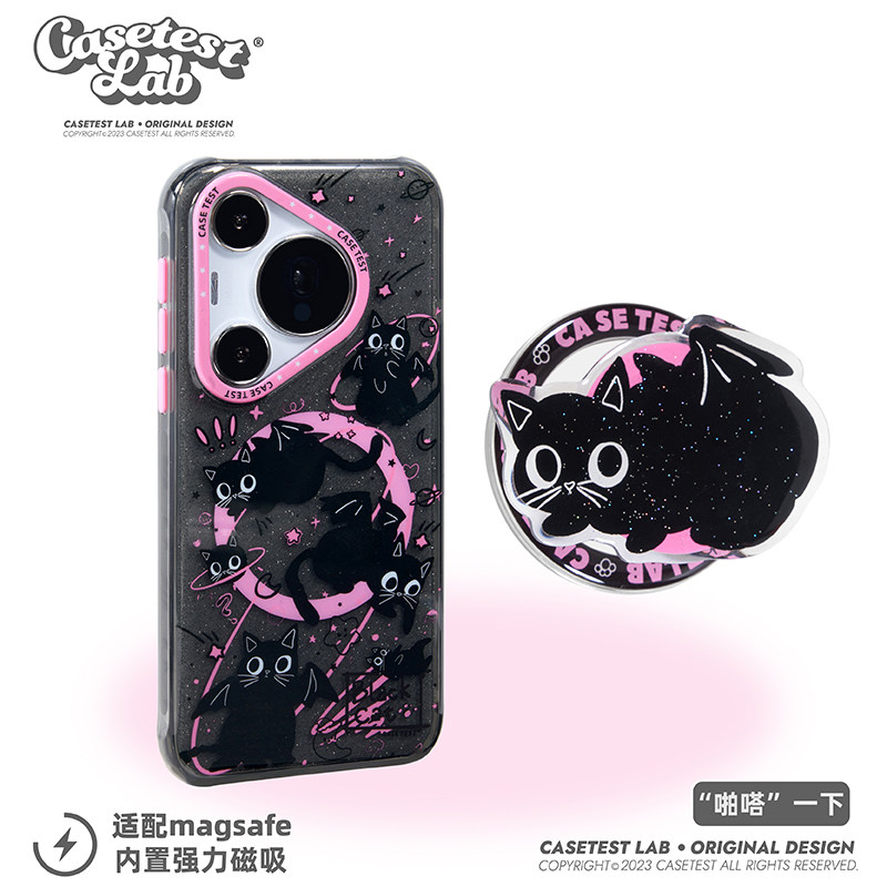 壳试验原创闪粉黑猫磁吸适用华为pura70pro+手机壳防摔萌系pura70保护套卡通新款可爱p70ultra创意日韩
