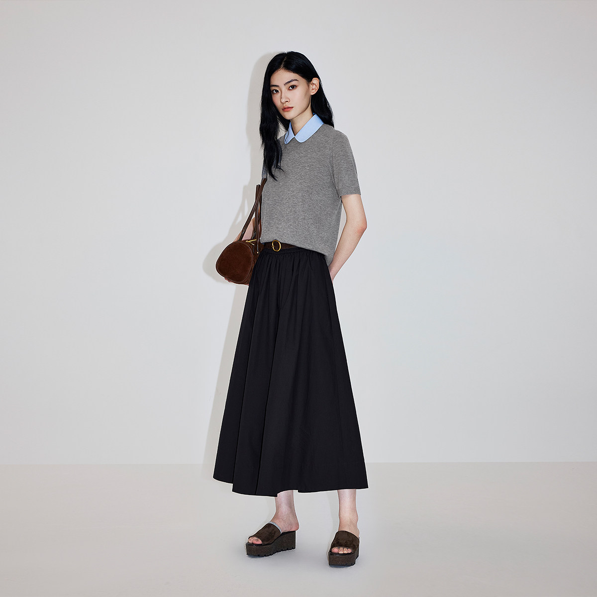 【新品】OCHIRLY欧时力 假两件短袖针织女2026春可拆卸领羊毛毛衣