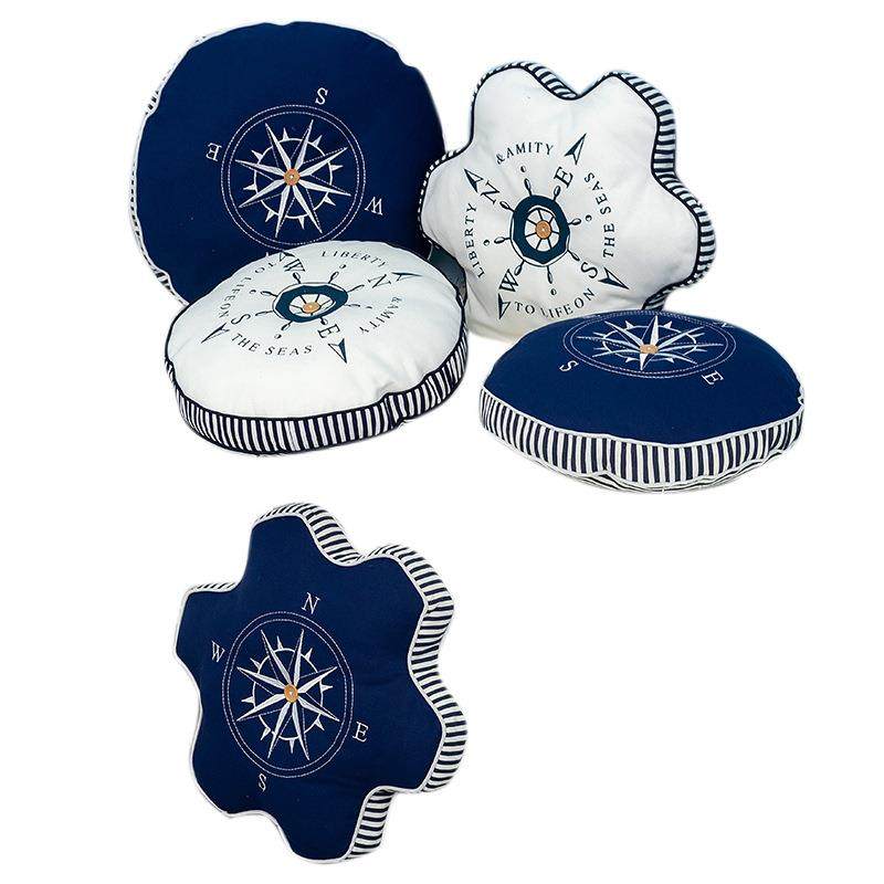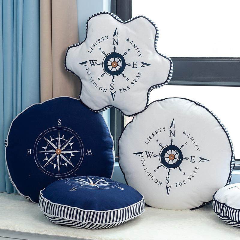 地中海刺绣抱枕指南针船锚靠枕儿童样板房创意沙发飘窗圆形靠垫