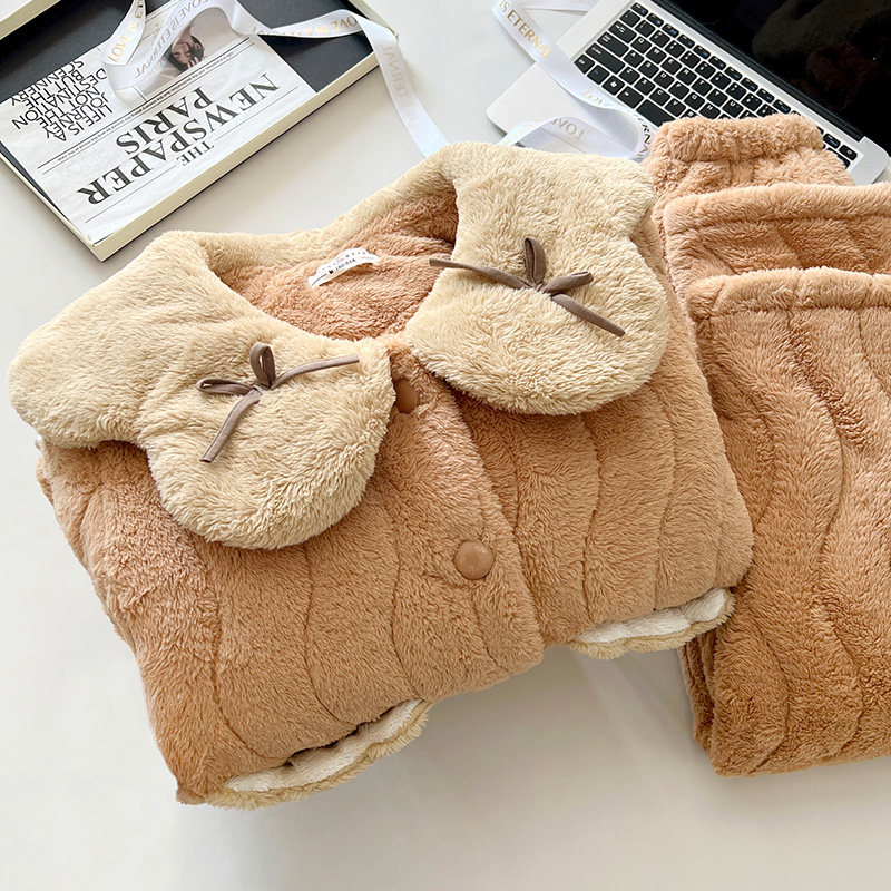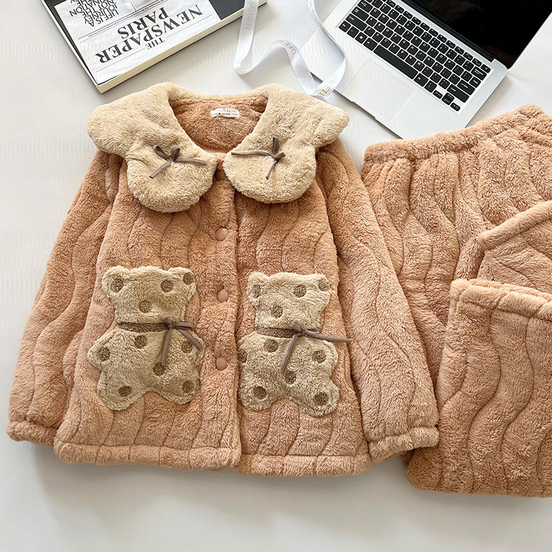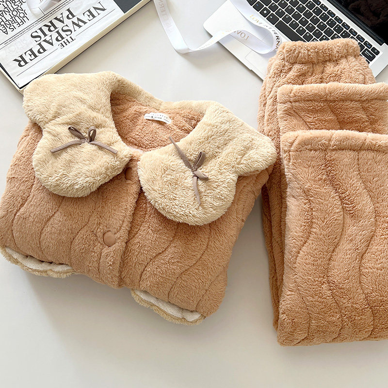 珊瑚绒睡衣女秋冬季2025新款三层夹棉加绒加厚保暖女士家居服套装
