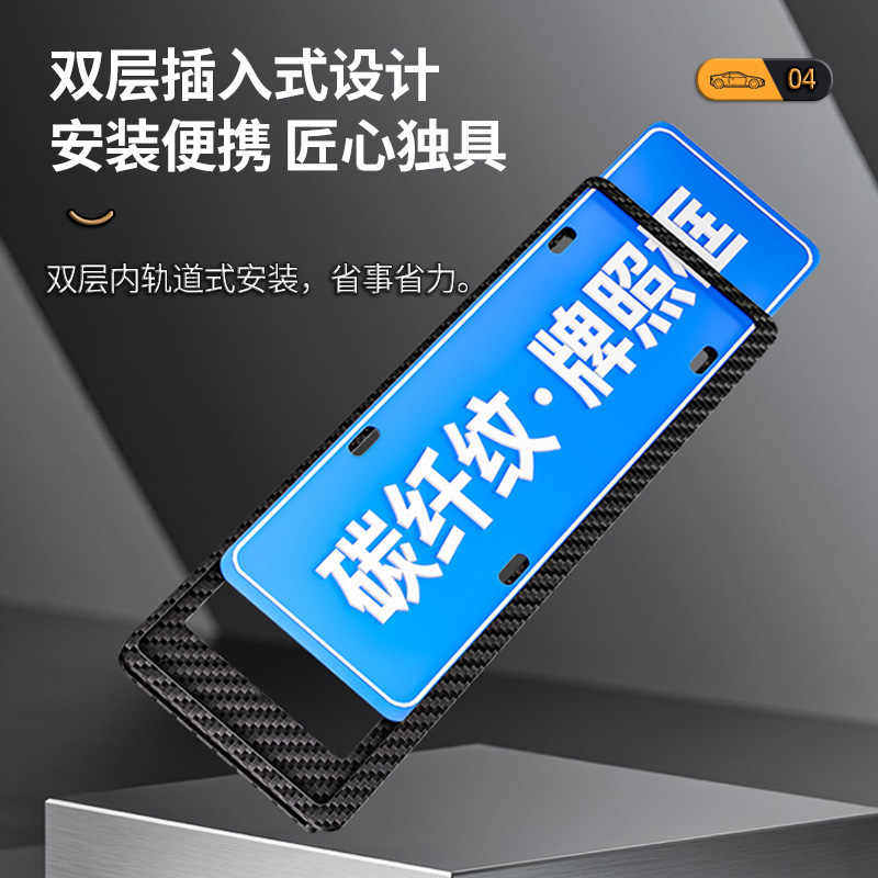碳纤纹双层牌照框保护框插入式防折掰的车牌边框绿牌汽车号牌架