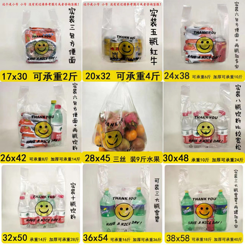 加厚透明笑脸塑料袋食品袋打包袋背心购物袋方便手提袋子食品级