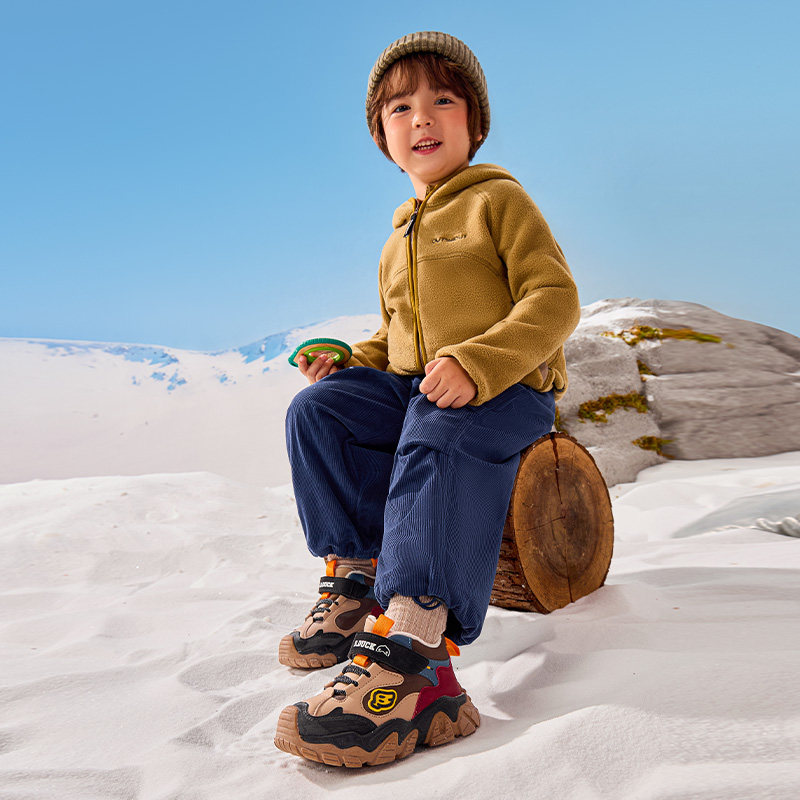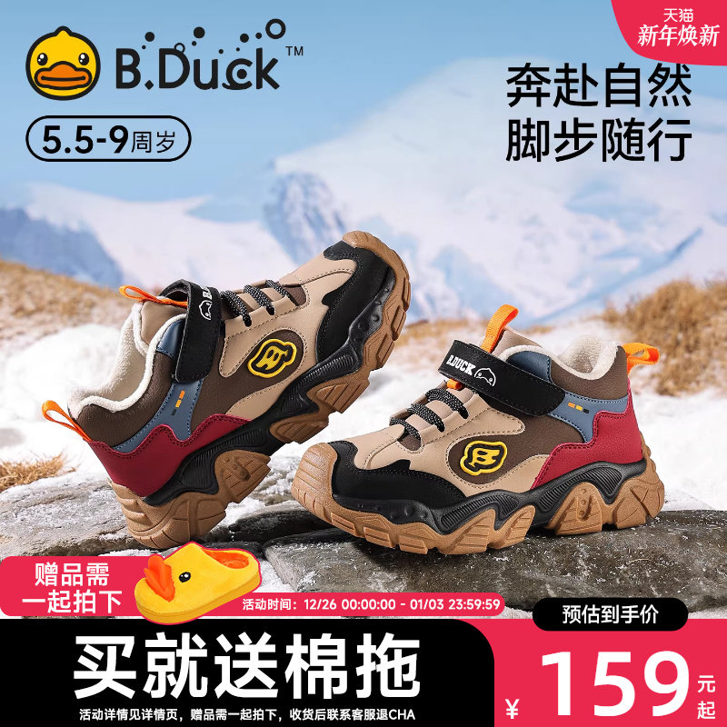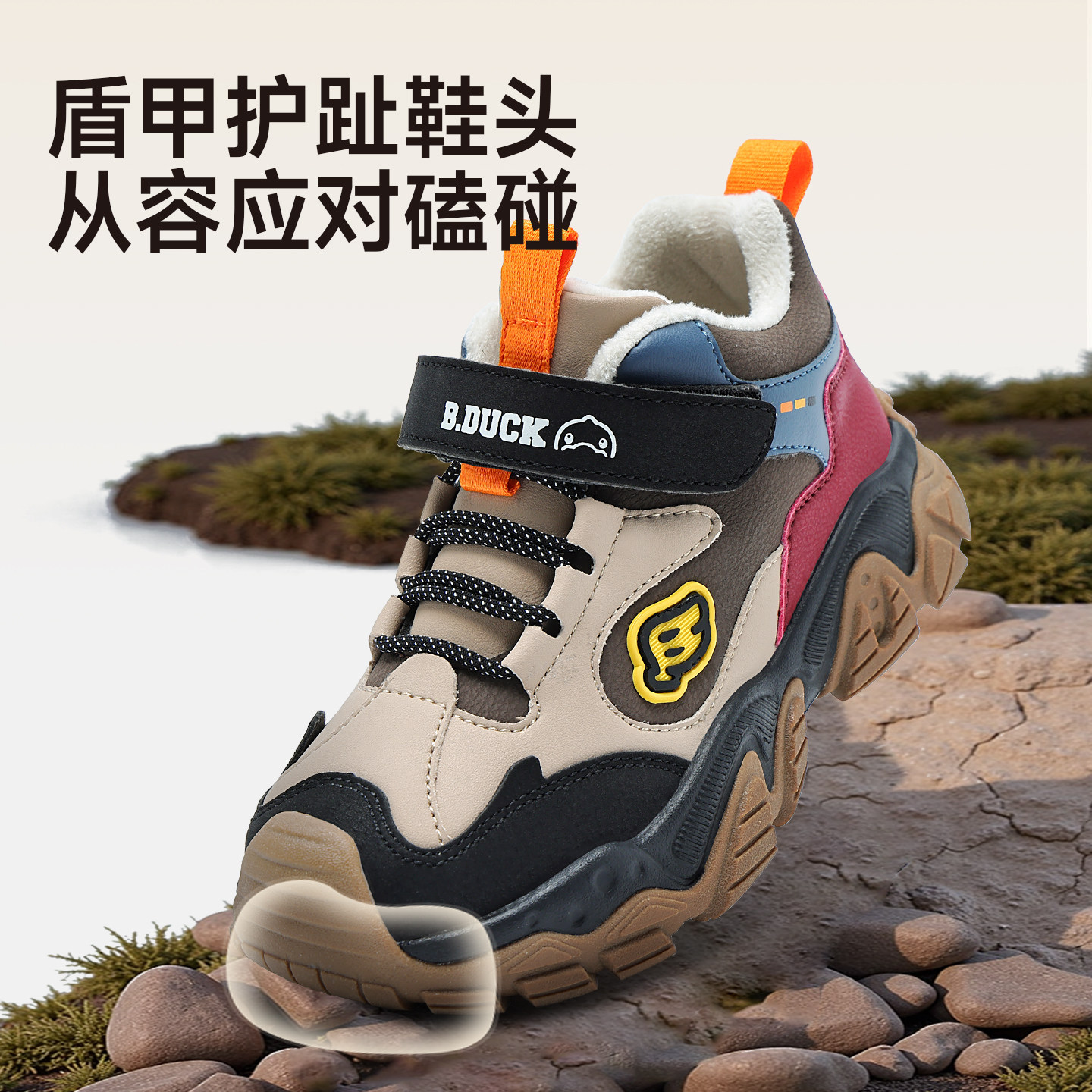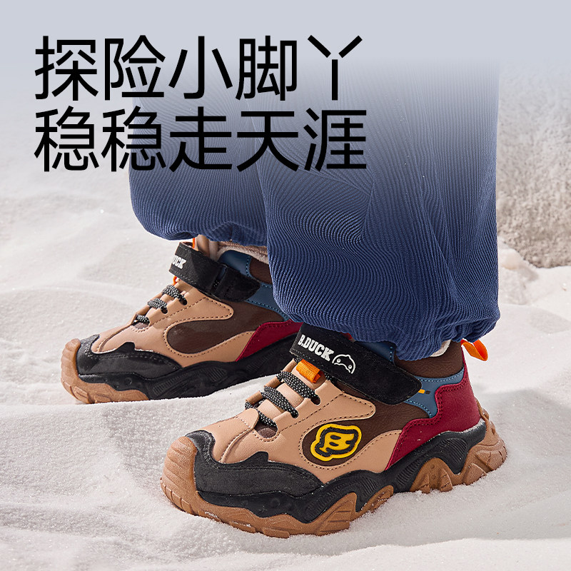 小黄鸭童鞋儿童运动鞋男孩2025秋冬皮面二棉鞋加绒青少年男童鞋子