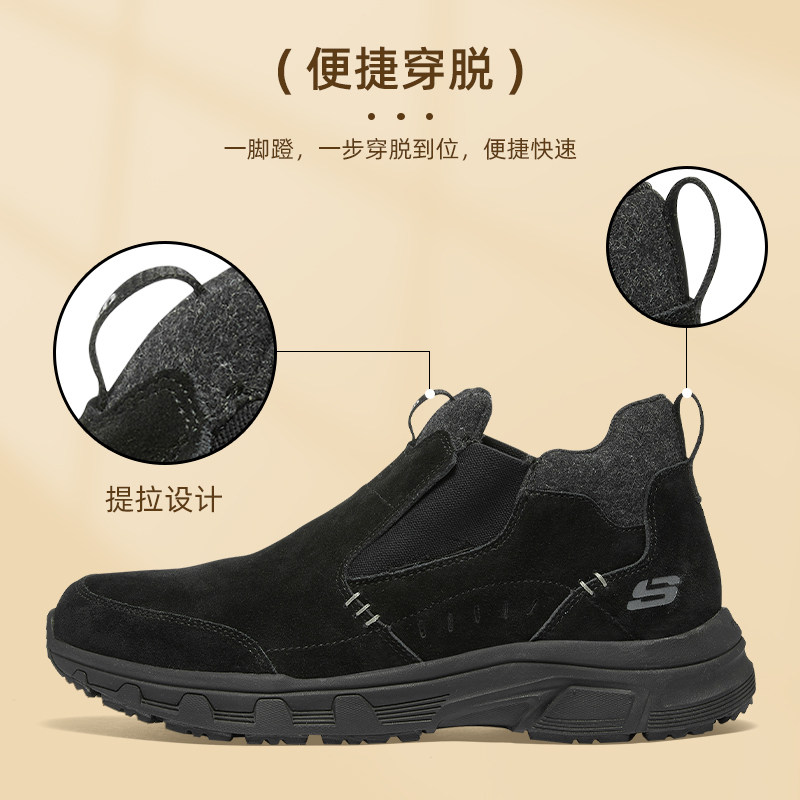 Skechers斯凯奇秋冬季款男鞋高帮加绒二棉鞋防滑一脚蹬保暖鞋靴子
