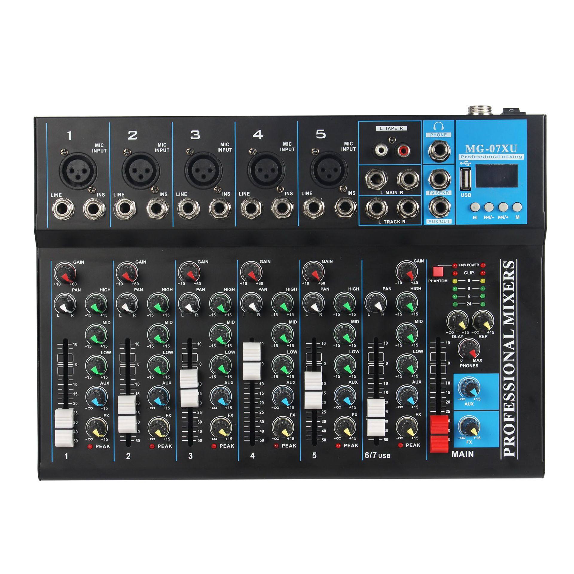 7路调音台专业舞台唱歌音响设备蓝牙UB监听调音DJ混音器。