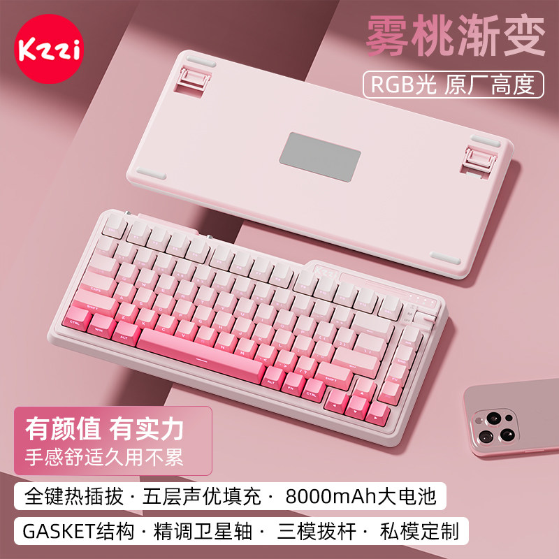 珂芝K75V2机械键盘无线三模蓝牙有线GASKET游戏办公专用高颜值RGB