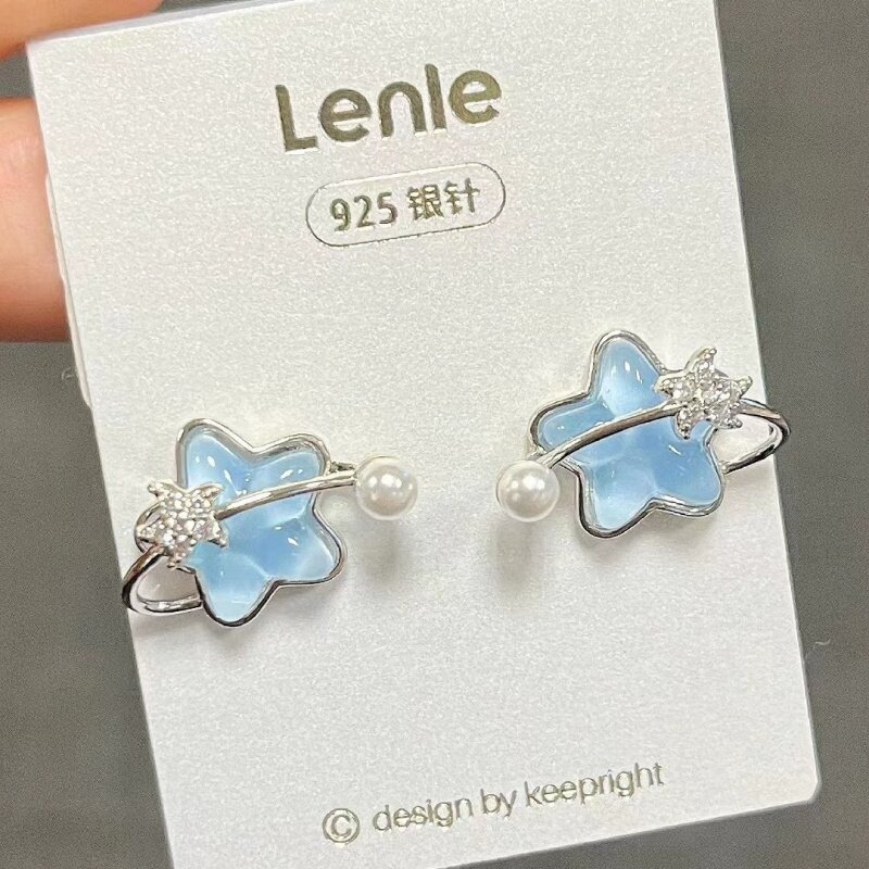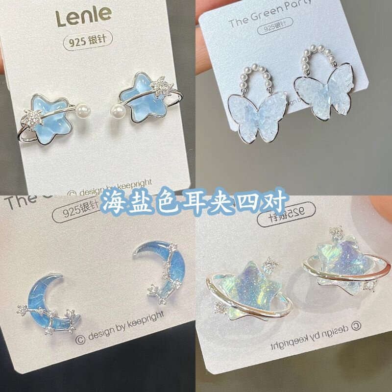 超仙海盐蓝清透星星耳夹四件套 百搭小众设计无耳洞耳饰耳环女