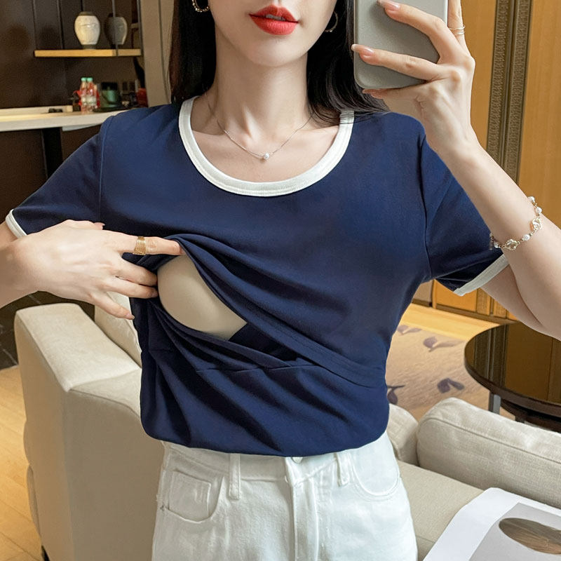 婧麒哺乳衣夏季薄款纯棉可外穿潮妈新款短袖T恤产后喂奶哺乳上衣