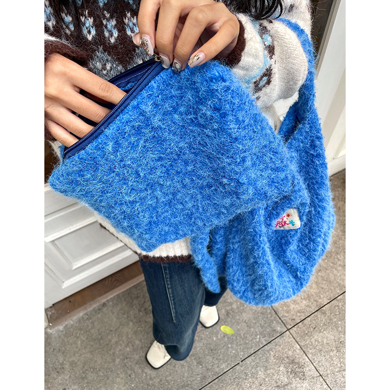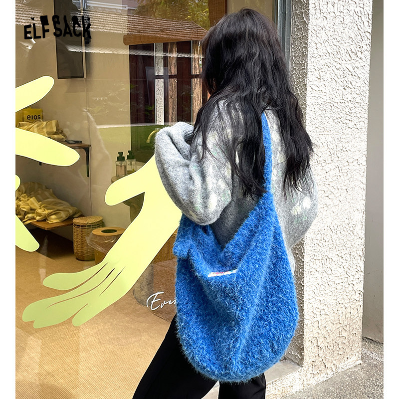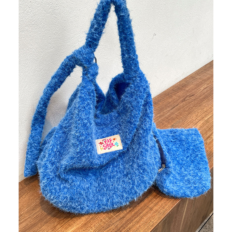 妖精的口袋学院风大容量毛绒绒斜跨包女2025年新款慵懒风单肩包