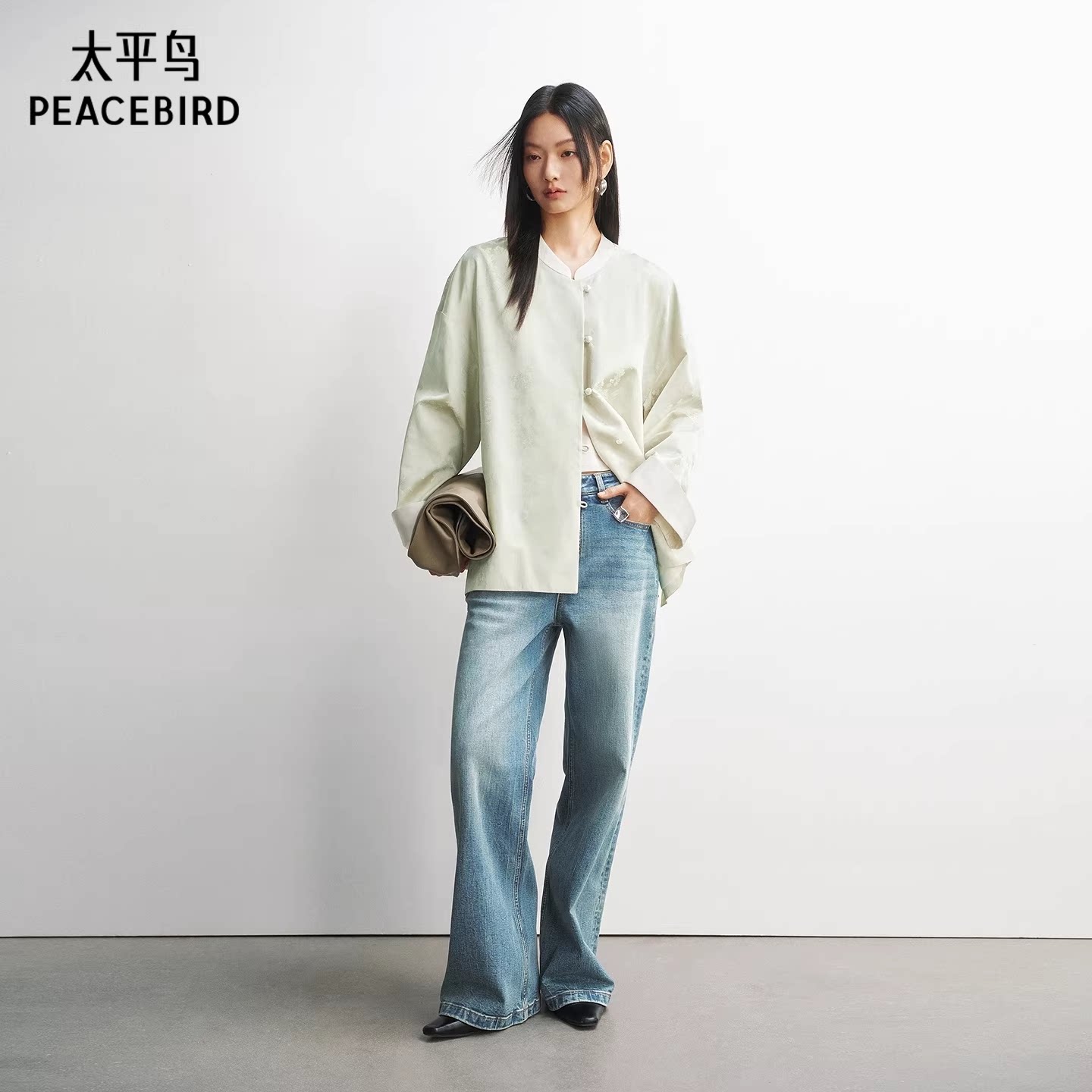 【来了就好】太平鸟新中式外套淡绿蝴蝶提花肌理气质时髦短外套