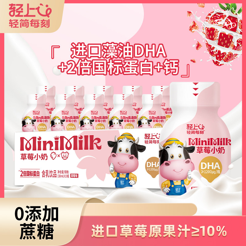 轻上DHA草莓小奶儿童牛奶饮品营养早餐搭配生牛乳含乳饮料整箱装