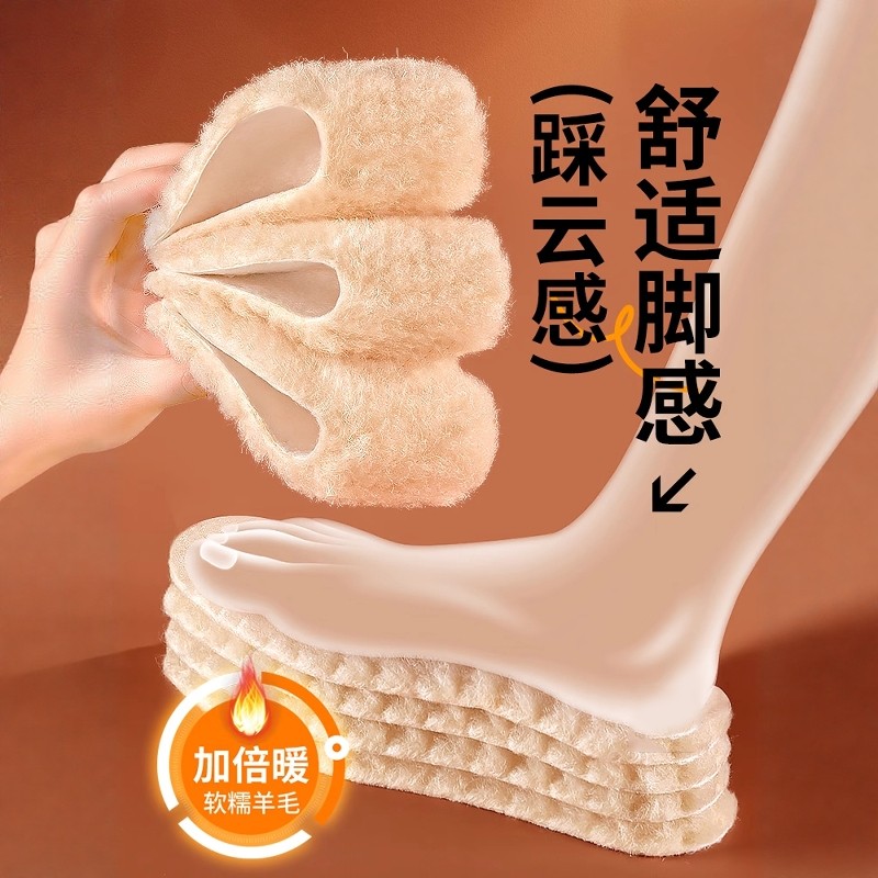 羊毛鞋垫冬季棉鞋垫透气吸汗防臭皮毛仿澳洲羊毛加绒加厚保暖鞋垫