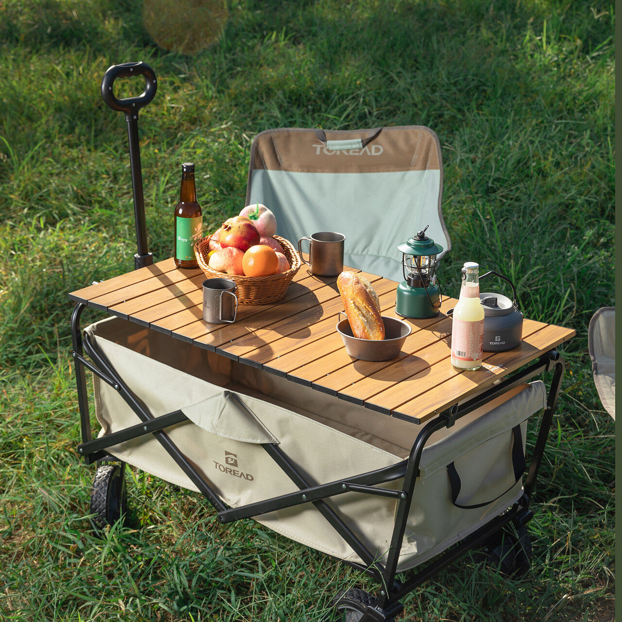 探路者户外折叠桌露营野餐一体轻便室外简易铝合金便携营地车桌板
