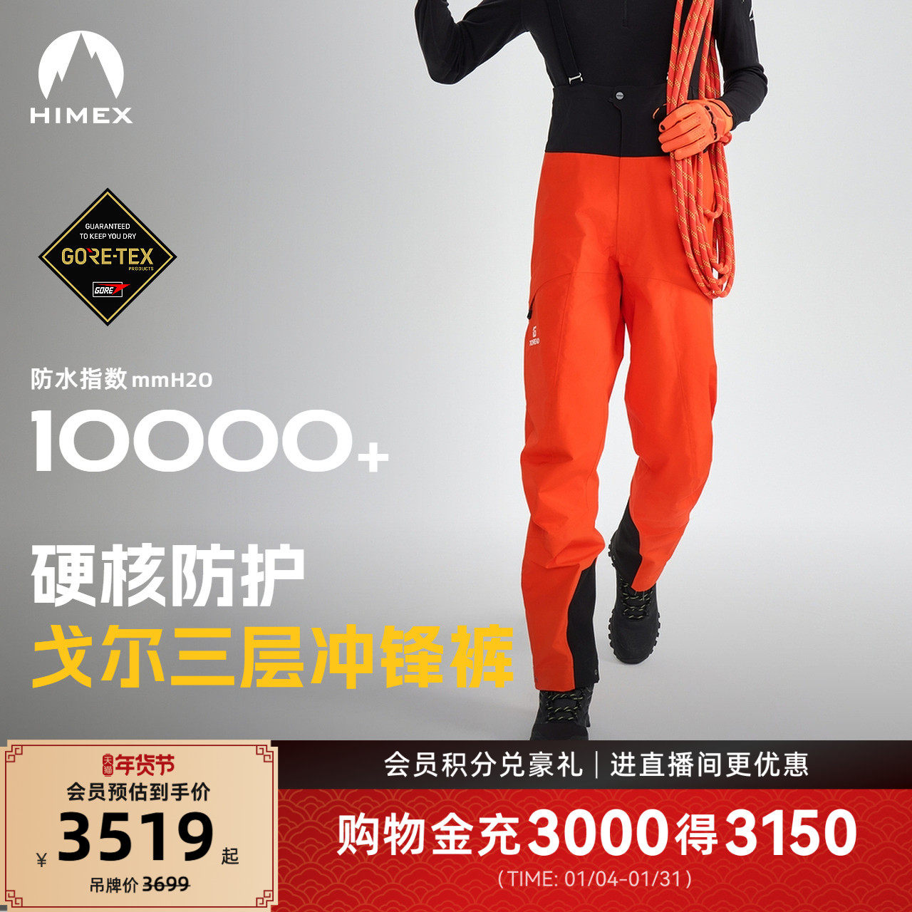 【商场同款】探路者户外登山高海拔攀登goretex三层冲锋裤男女