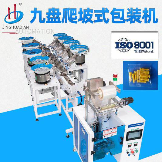 自动多盘爬坡式五金包装机家具配件螺丝包装机塑胶件立式包装机