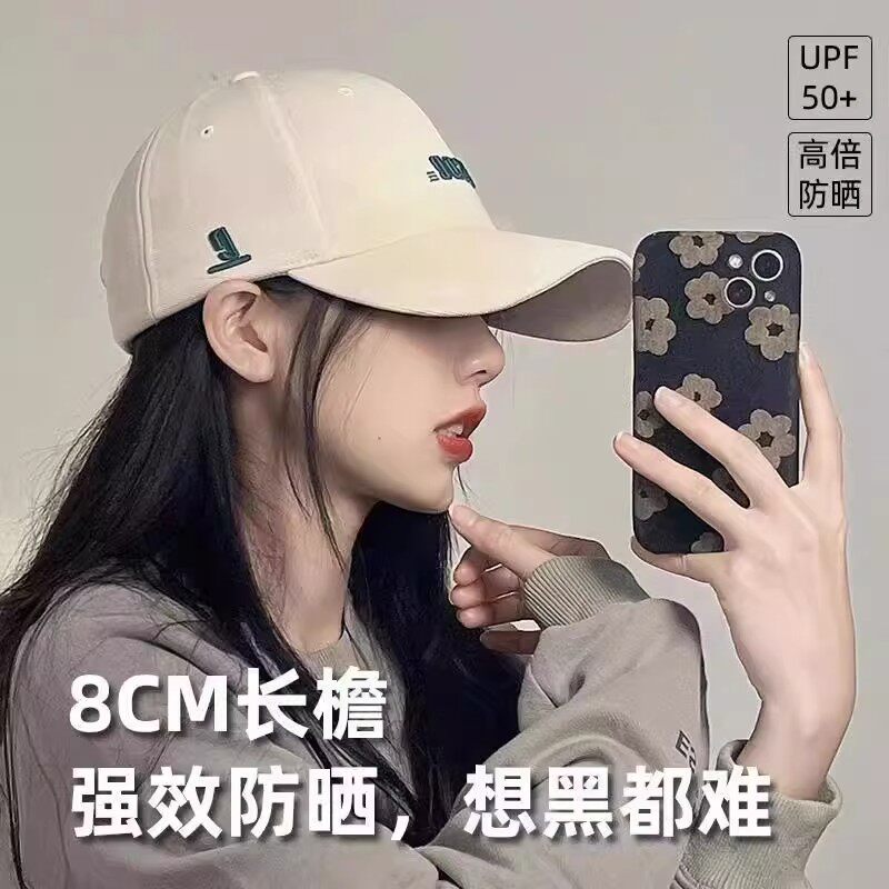 棒球帽子鸭舌帽显脸小女硬顶大头围运动新款刺绣宽帽檐加宽高品质