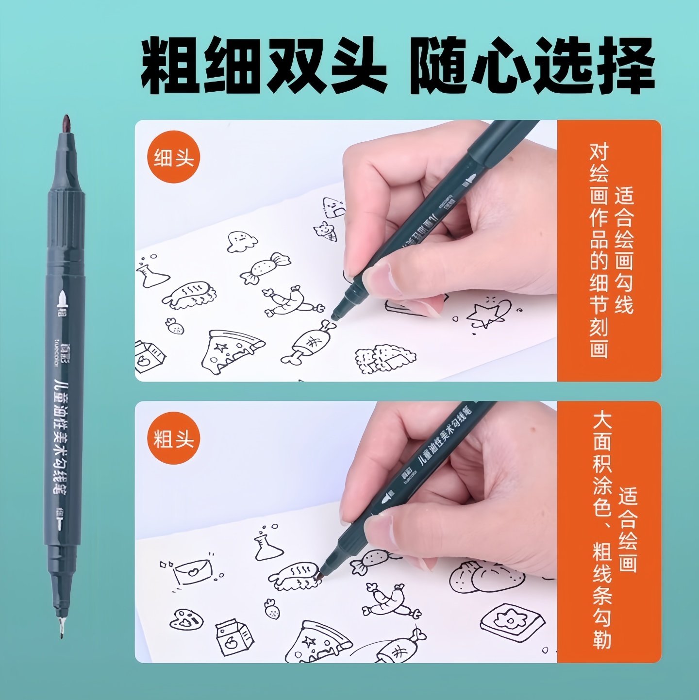 晨光勾线笔记号笔双头油性美术专用小学生黑色红色蓝色两头儿童幼儿园马克笔速干防水防油不掉色工地大头笔