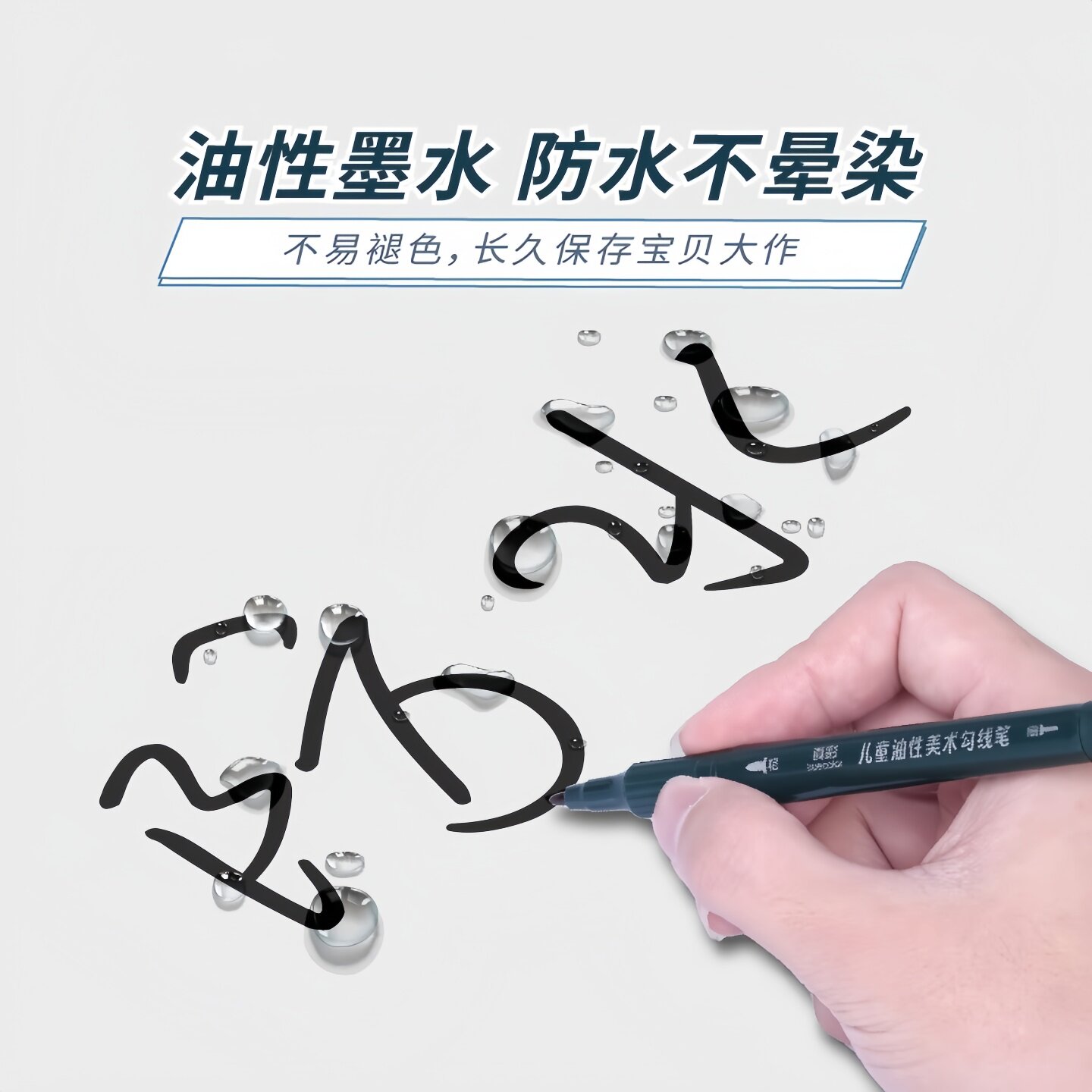 晨光双头黑色油性记号笔学生美术专用大容量勾线笔防水速干不掉色