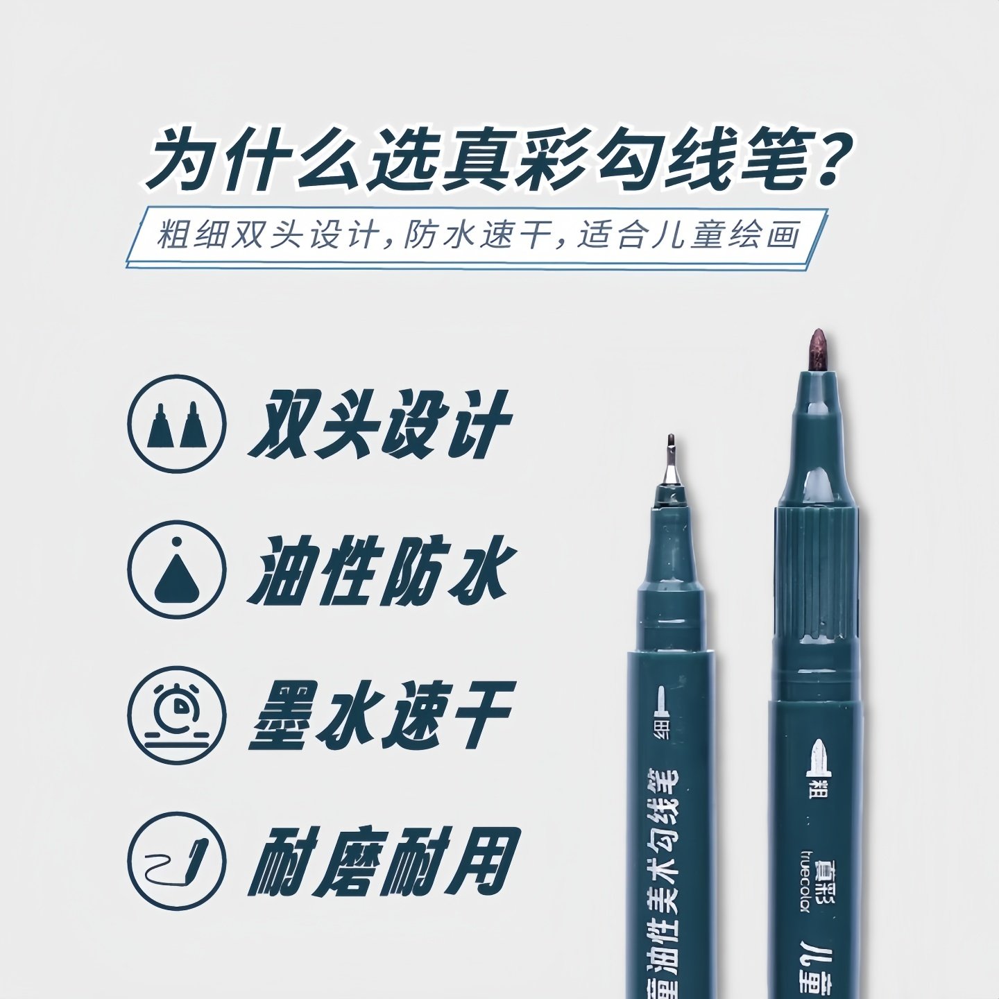 真彩MK3150记号笔小双头油性记号笔小头细头马克笔勾线笔儿童绘画黑色描边美术勾边笔批发划线笔速干防水笔