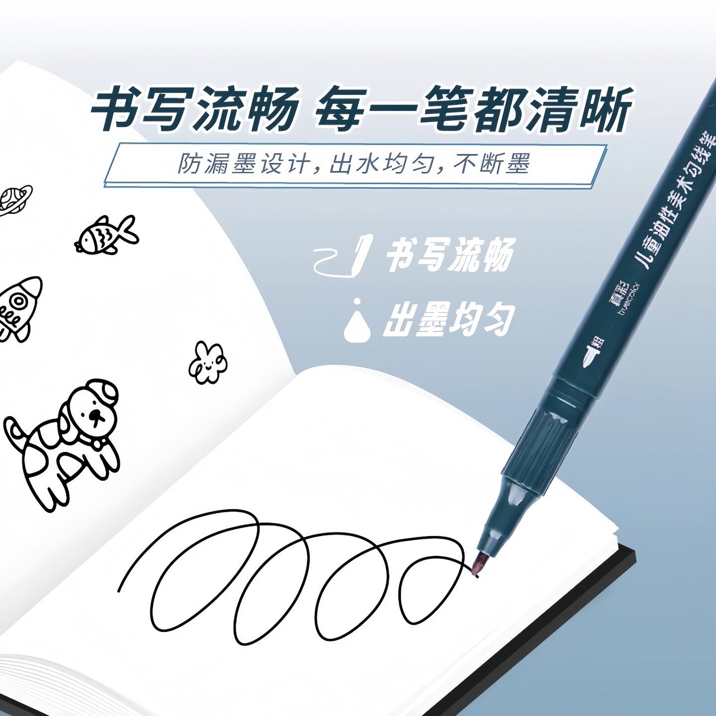 晨光水性小双头勾线笔极细记号笔6230学生手账儿童绘画办公文具1.0+0.5mm防渗标记美术学习专用勾线笔多用途