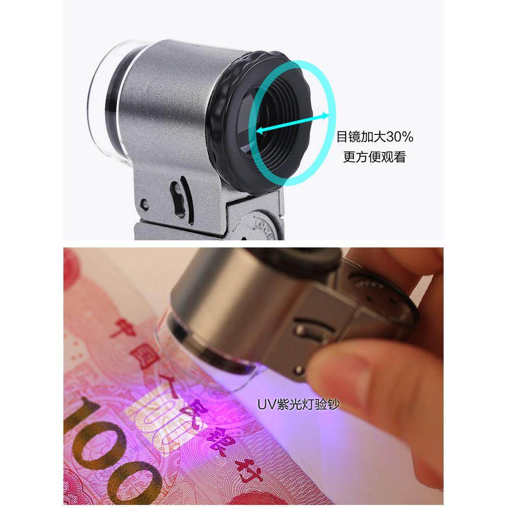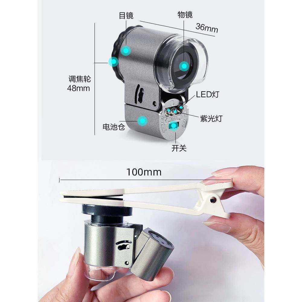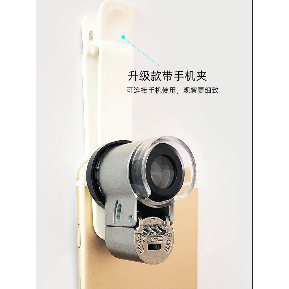 60倍放大镜高倍率高清晰度50倍迷你手机显微镜100邮票古董珠宝专
