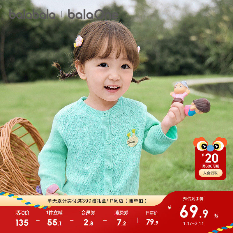 巴拉巴拉童装女童薄开衫宝宝毛衫2025新款秋装针织衫甜美儿童毛衣
