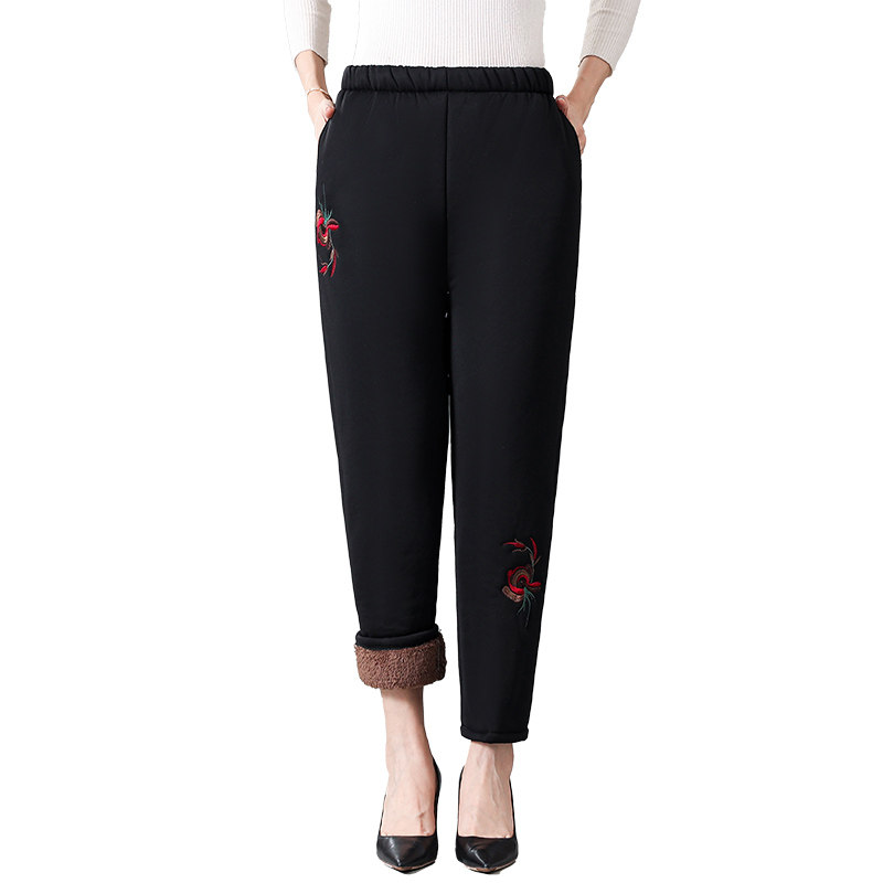 中老年人冬季裤子加绒加厚羊羔绒妈妈保暖棉裤女外穿宽松奶奶长裤