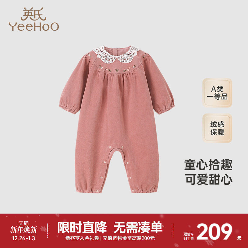 【商场同款】英氏童装灯芯绒连身衣秋保暖长袖女宝包屁衣新款
