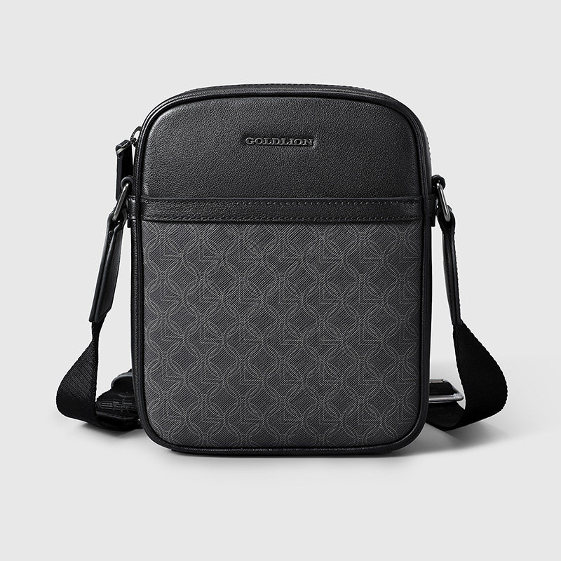 金利来皮具男士新款PVC品牌印花商务斜挎包时尚竖款轻便休闲挎包