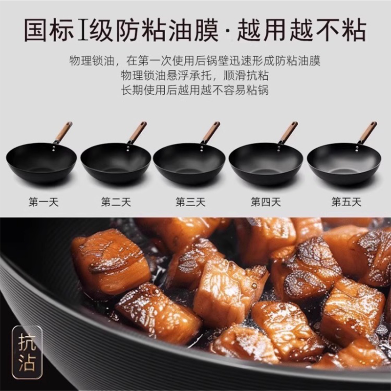 【经典款】中康精铁炒锅铁锅氮化防锈无涂层炒锅电磁炉燃气灶通用
