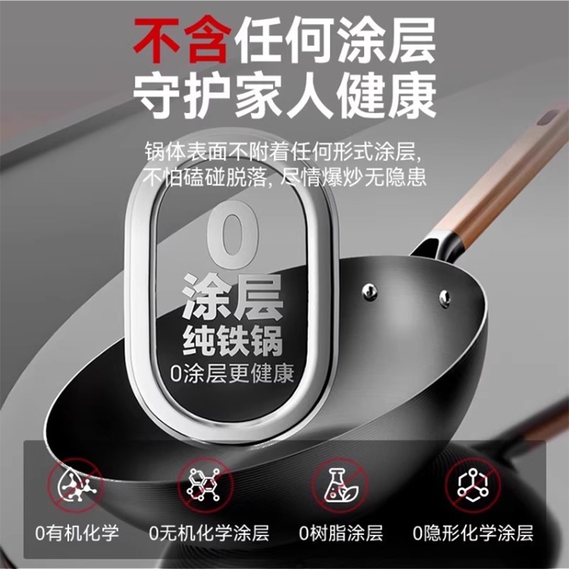 铁锅官方旗舰炒菜锅老式炒锅铁锅家用不粘锅无涂层燃气灶适用