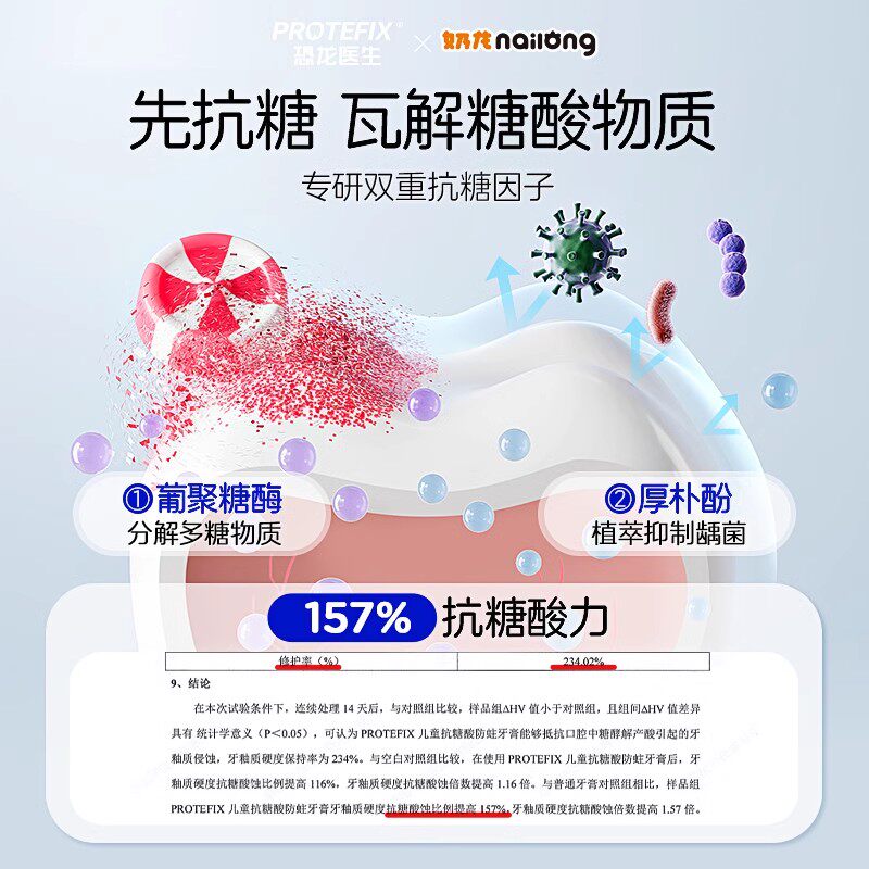 恐龙医生含氟儿童牙膏3-6-12岁以上奥拉氟防蛀换牙期抗糖专用固齿